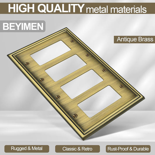 2 Pack Quad Toggle Light Switch Covers Plate, Antique Brass Metal Material Switch Plate Covers, 4 Gang Wall Plate for Light Switch - Classic Style
