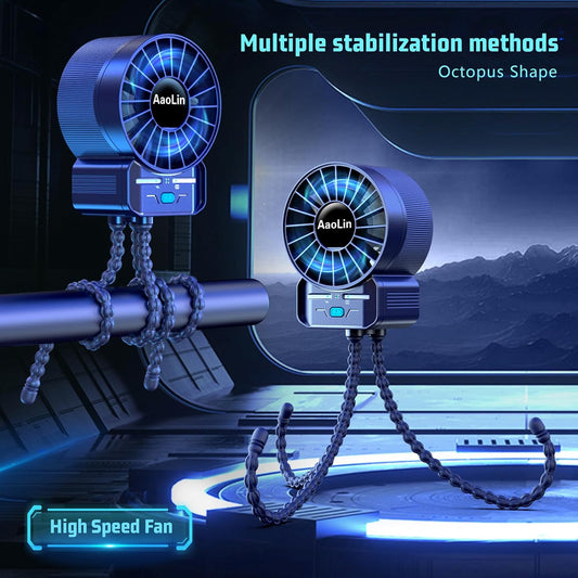 2 Pack Multifunctional Portable Stroller Fan 4 Speed 6600rpm High Speed Usb Rechargeable Personal Mini Handheld Fan Extended Tripod for Desktop Winding Kids Bed Treadmill Bike Golf Cart Outdoor Travel