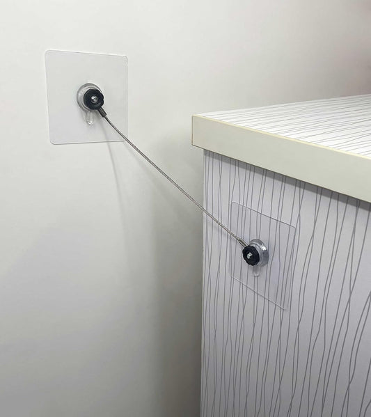 10 Pack Cut to Length TV Safety Straps for Flat Screen, No-Drill Adjustable Anti-Tip Earthquake Straps for TV and Furniture,Including 1in*32ft Hook and Loop Straps with 20 Adhesive Anchors