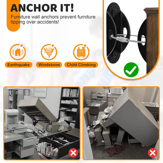 10 Pack Furniture Wall Anchors for Baby Proofing, Anti Tip Furniture Anchors, Secure 400 Pound Furniture, Dresser, Bookcase to Wall Prevent Falling, Earthquake Straps for Child Safety (Black)