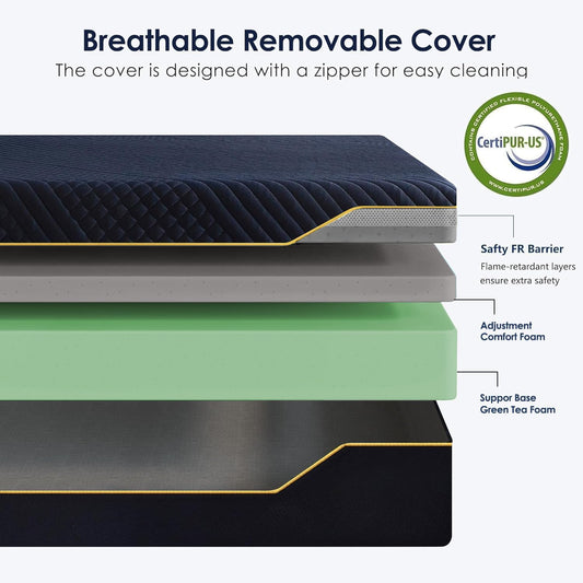 10 inch Queen Mattress Multi-Layer Memory Foam Mattress - Medium Firmness with Bamboo Charcoal & Green Tea Infusion