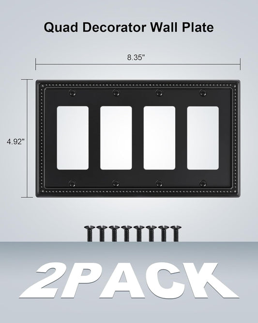 2-Pack Quad Decorator Outlet Cover Plate, Black Pearls Decorative Switch Plates and Outlet Covers, Metal Wall Plates for Electrical Outlets, Receptacle, GFCI Outlet, Dimmer Switch