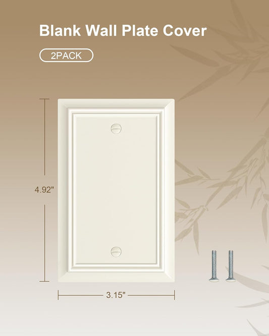 2-Pack Single Blank Wall Plate, Durable Natural Bamboo Fiber Wall Plate Cover,Light Almond 1 Gang Wall Plate for Unused Outlets/Switches, Corrosion Resistant
