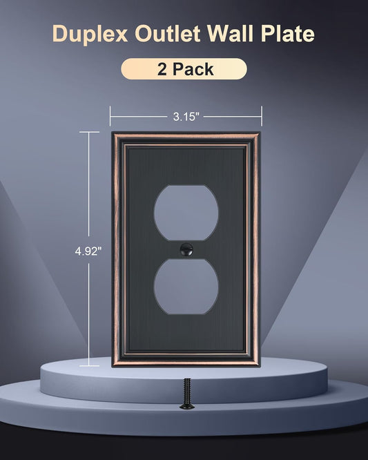 2-Pack Single Duplex Outlet Cover Plate, Decorative Aged Bronze Switch Plates and Outlet Covers, Metal Wall Plates for Electrical Outlets, 1 Gang Receptacle Cover, Corrosion Resistant