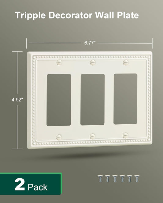 2-Pack Triple Decorator Outlet Cover Plate, Light Almond Pearls Decorative Switch Plates Covers, Metal Wall Plates for Electrical Outlets, Receptacle, GFCI Outlet, Dimmer Switch
