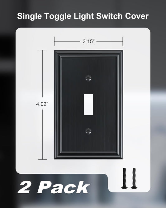 2-Pack Single Toggle Light Switch Cover Plate, Durable Solid Zinc Alloy Decorative Switch Plate Covers, Aged Bronze 1 Gang Wall Plate, Corrosion Resistant