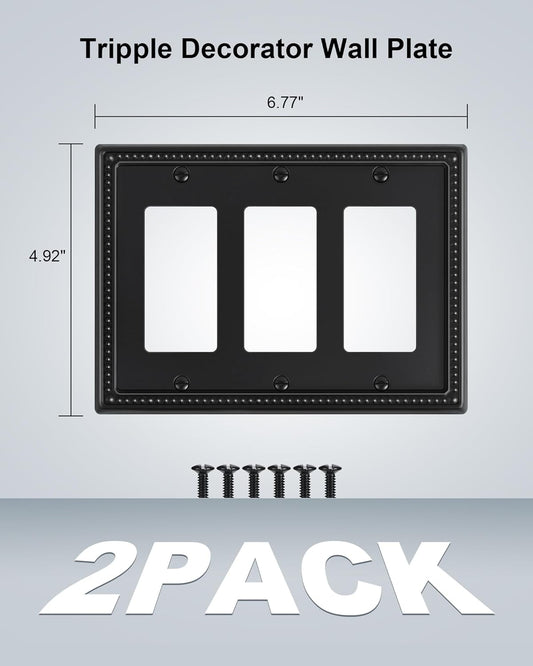 2-Pack Triple Decorator Outlet Cover Plate, Black Pearls Decorative Switch Plates and Outlet Covers, Metal Wall Plates for Electrical Outlets, Receptacle, GFCI Outlet, Dimmer Switch