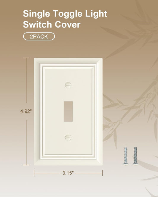 2-Pack Single Toggle Light Switch Cover Plate, Durable Natural Bamboo Fiber Decorative Switch Plate Covers, Light Almond 1 Gang Wall Plate, Corrosion Resistant