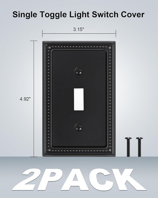 2-Pack Single Toggle Light Switch Cover Plate, Pearls Decorative Switch Plate Covers, Black 1 Gang Metal Wall Plate, Corrosion Resistant