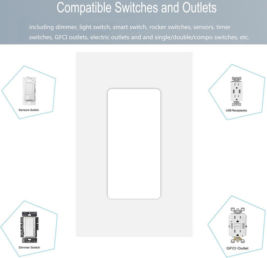 20 Pack 1-Gang Screwless Decorator Wall Plate Cover Switch Outlet Electrical Faceplate for Light Switche, Smart Switch, Receptacle, Dimmers, USB Outlet, GFCI, Child Safe Cover Plate, White