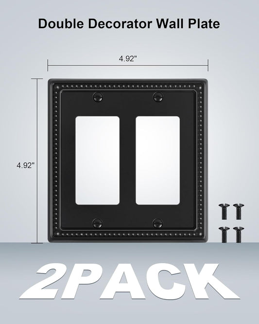 2-Pack Triple Toggle Light Switch Cover Plate, Pearls Decorative Switch Plate Covers, Black 3 Gang Metal Wall Plate, Corrosion Resistant