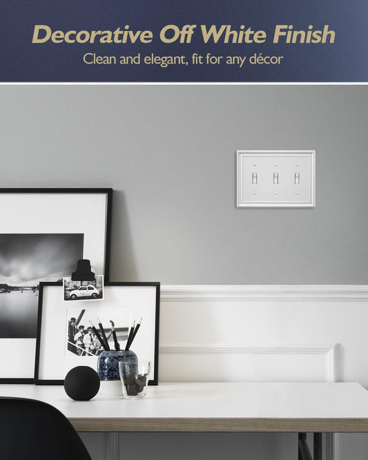 2-Pack Triple Toggle Light Switch Cover Plate, Metal Switch Plate Covers, Off White Wall Plate, 6.77''*4.88'', Midsize