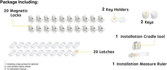 20 Pack Magnetic Cabinet Locks Baby Proofing - Vmaisi Children Proof Cupboard Drawers Latches - Adhesive Easy Installation