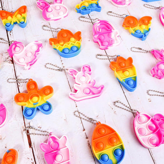 24 Packs Bulk Mini pop Fidget Keychain , Birthday for Boys and Girls Kids Party Favors Supplies and Classroom Student Prize