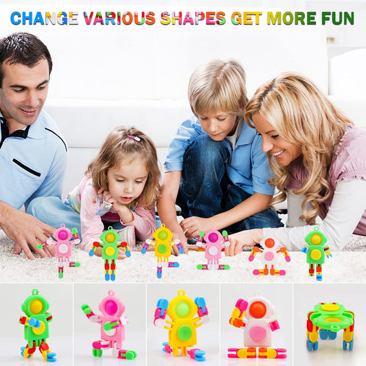24 Pcs Finger Spinners Sensory Toys, Creative Transformable Chain Robot Toy Fidget Finger Spinners DIY Stress Relief Toy with Transformable Chain for Boys Girls