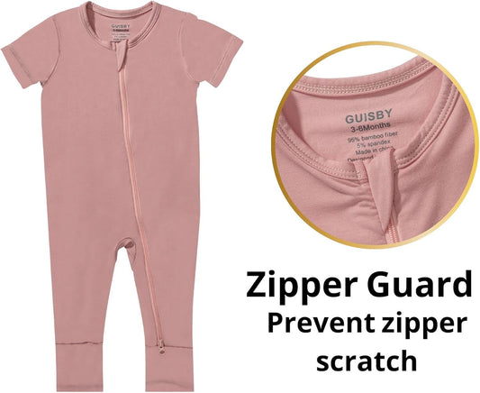 GUISBY Rayon made from bamboo Baby Pajamas Short Sleeve Footless Rompers 2 Way Zipper Sleeper for Baby
