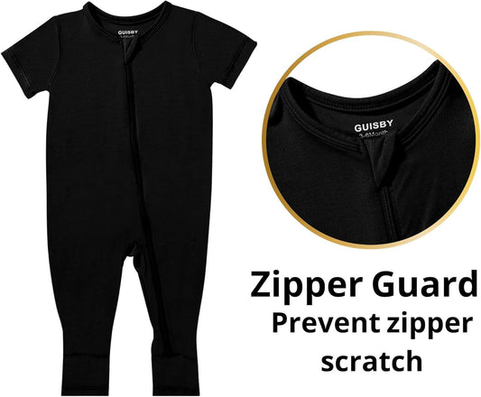 GUISBY Rayon Made from Bamboo Baby Pajamas, Summer Short Sleeve Footless Rompers, 2 Way Zipper Sleeper