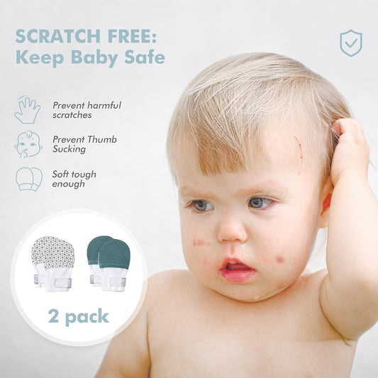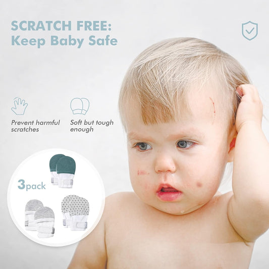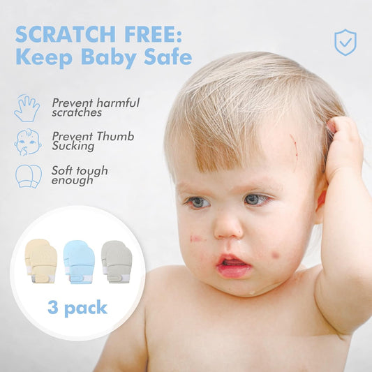 HAPIU Baby No Scratch Mittens Stay On, 100% Cotton Breathable, Adjustable Infant Gloves for Boys Girls, Newborn - 12 M