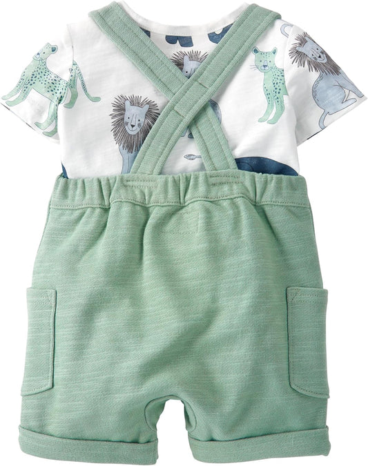 little planet by carter's unisex-baby 2-piece Organic Cotton Shortall Set, Green, 3M