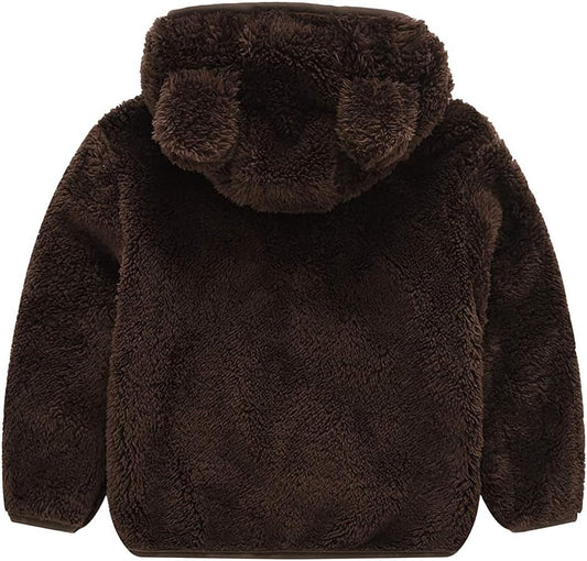 AIWUHE Toddler Boys Girls Hooded Jacket Fleece Hoodie Winter Warm Solid Color Teddy Coat Zip-up Bear Ear Sweater Fall Clothes
