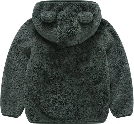 AIWUHE Toddler Boys Girls Hooded Jacket Fleece Hoodie Winter Warm Solid Color Teddy Coat Zip-up Bear Ear Sweater Fall Clothes