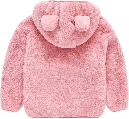 AIWUHE Toddler Boys Girls Hooded Jacket Fleece Hoodie Winter Warm Solid Color Teddy Coat Zip-up Bear Ear Sweater Fall Clothes