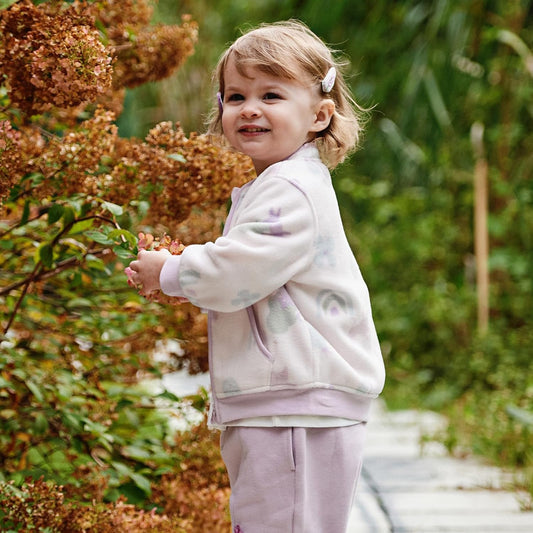 DAVE & BELLA Kids Printed Polar Fleece Jacket Toddler Baby Boys Girls Zip Up Long Sleeve Spring Fall Warm Outerwear Coat