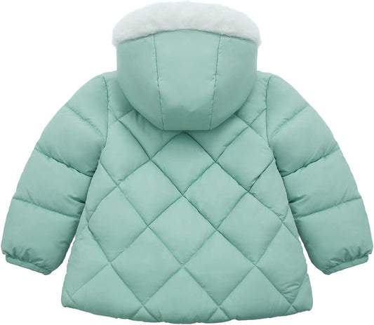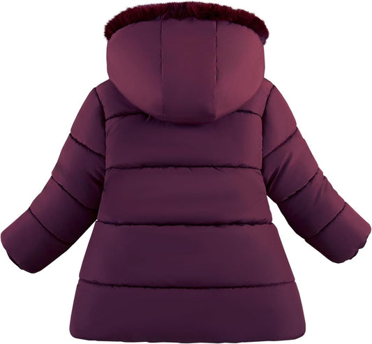 Rokka&Rolla Baby Girls' Water-Resistant Puffer Jacket Hooded Winter Coat with Soft Mini Fur Lining for Newborn Infant Toddler