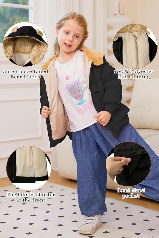 TUONROAD Baby Girls Coats for 6 Months-5 Years Toddlers Boy Winter Jacket Warm Bear Hooded Outdoor Coats Size 5