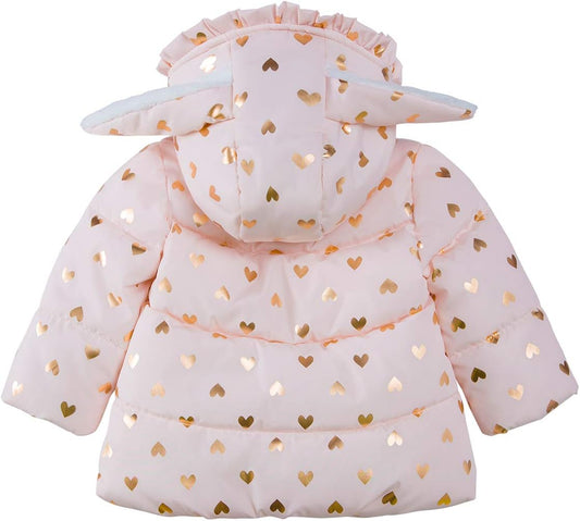 Rokka&Rolla Baby Girls' Water-Resistant Soft Mini Fur Lined Puffer Jacket Winter Coat for Newborn Infant Toddler