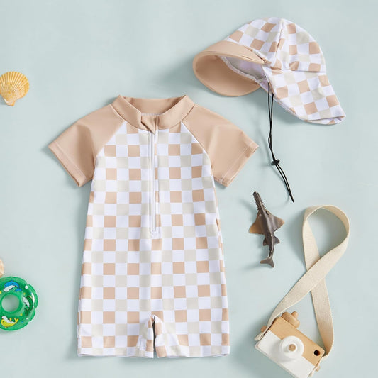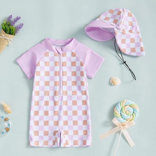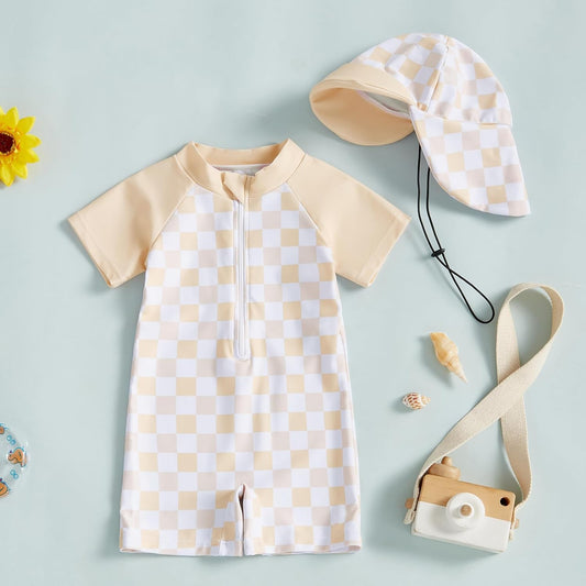 MAYUMMPY Baby Boys Girls Swimwear Casual Zipper One Pieces Rash Guard Swimsuit and Hat Beachwear Bathing Suit