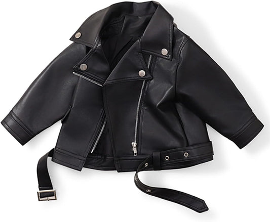 Baby Girl Autumn PU Faux Leather Jacket Kid Boy Motorcycle Oblique Zipper Coat