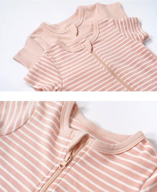 Teach Leanbh Unisex Baby 2 Pack Pajamas Cotton Short Sleeve 2 Way Zipper Stripe Soild Romper Jumpsuit Sleep and Play