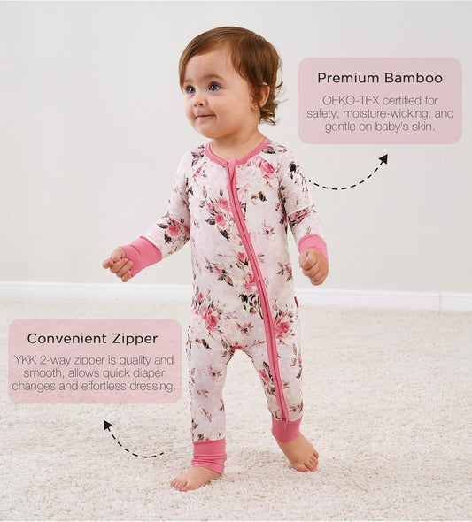Baby One-Piece Romper Footless Bamboo Viscose Pajamas Sleepers for Baby Boys and Girls
