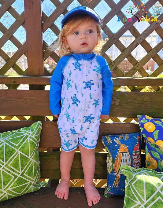 Funnycokid Baby Swimsuit Boy Toddler Bathing Suit Rash Guard UPF 50+ Swimwear 6 Months-4T