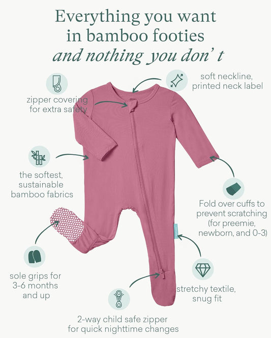 Baby Zipper Footie Pajamas, Supersoft Bamboo Rayon Baby Footed Pjs Boy Girl 0-3-6-9-18-24 Month Coverall Sleepers