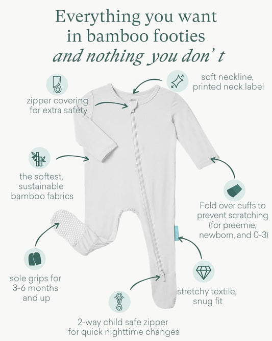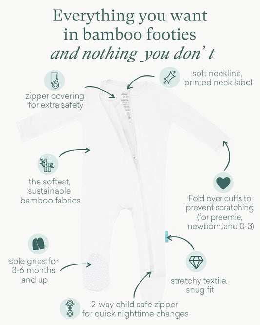 Baby Zipper Footie Pajamas, Supersoft Bamboo Rayon Baby Footed Pjs Boy Girl 0-3-6-9-18-24 Month Coverall Sleepers