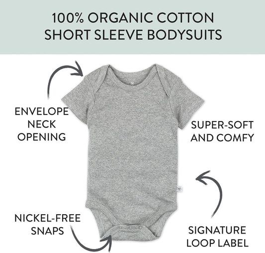 HonestBaby unisex-baby 10-pack Short Sleeve Bodysuits One-piece 100% Organic Cotton for Infant Baby Boys, Girls