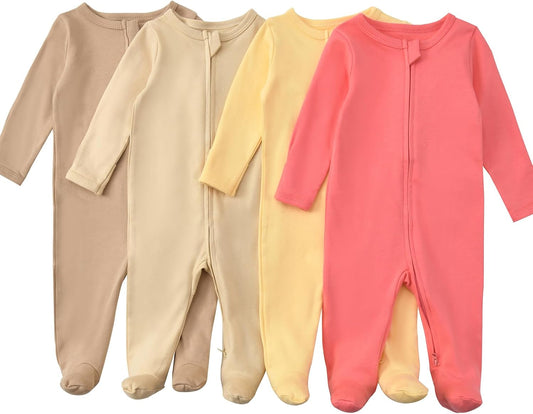 Jimonda Baby Boy Romper 4-Pack - Bamboo Zip-Up Pajamas for 0-24 Months,Unisex Footed Sleepers,Ultra-Soft Stretchy Fabric