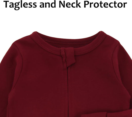 Aablexema Baby Footie Pajama with Mitten Cuffs, Double Zipper Infant Cotton clothes Sleeper Pjs, Footed Sleep Play