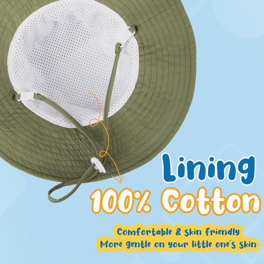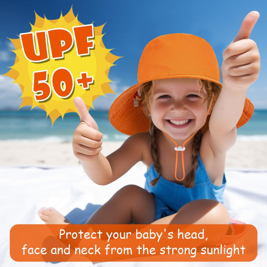 Baby Sun Hat Kids Summer UPF 50+ Toddler Bucket Hat Wide Brim Adjustable Beach Hats for Boys Girls Age 0-6 Years