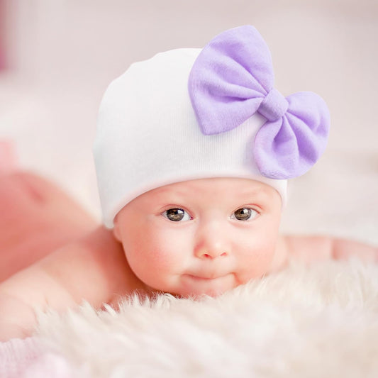BQUBO Newborn Baby Hats Mittens Set Hospital Hat Beanie Infant Bow Hats Baby Gloves No Scratch Mittens for 0-6 Months