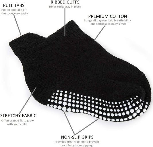 Zaples Baby Non Slip Grip Ankle Socks with Non Skid Soles for Infants Toddlers Kids Boys Girls