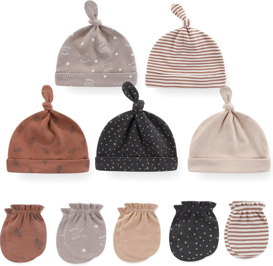 Baby Hat and Mittens Set Cotton Newborn Baby Hats Caps for Boys and Girls, 0-6 Months