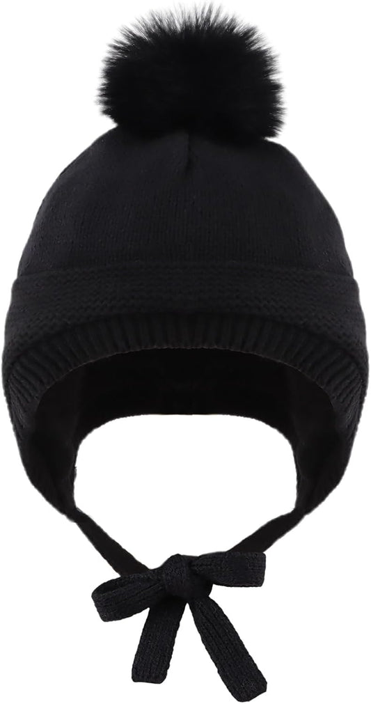 Basic Winter Baby Beanie Gloves Boys Girls Knitted Hat Pompom Kids Earflap Hats Warm Infant Toddler Beanie Mittens Set