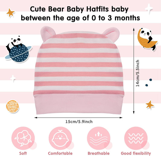 Geyoga 6 Pieces Newborn Baby Hat Bear Ears Infant Caps Baby Boy Girl Toddler Hats Infant Beanie Caps for 0-3 Months