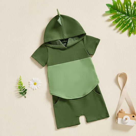 Toddler Baby Boy Summer Hooded Outfit Contrast Color Short Sleeve T Shirt Top Elastic Shorts Summer Clothes Set