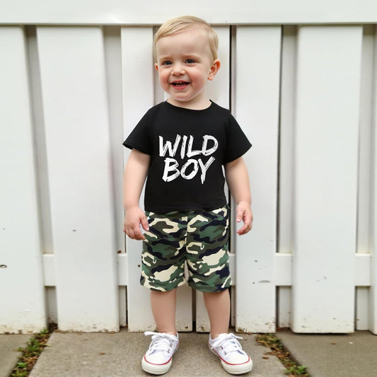wdehow Toddler Kids Baby Boy Summer Clothes Sets 1T 2T 3T 4T 5T Letter Print Short Sleeve Tops Camouflage Shorts Outfits