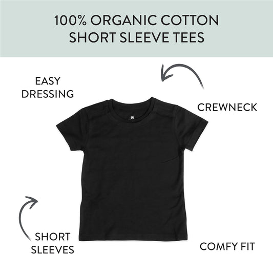 5-Pack Short Sleeve T-Shirts 100% Organic Cotton Baby, Toddler, Little Kid, Boy, Girl, Unisex