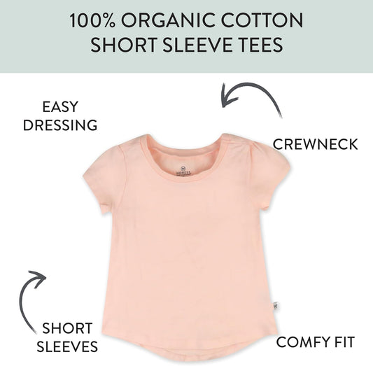 HonestBaby 5-Pack Short Sleeve T-Shirts 100% Organic Cotton Baby, Toddler, Little Kid, Boy, Girl, Unisex